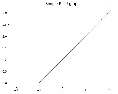 plot_function(f, title = 'Simple ReLU graph', color = 'g')